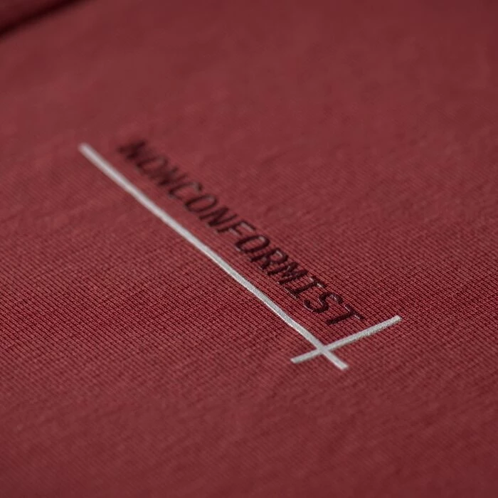 La coupe est moderne, avec une longueur légèrement supérieure à celle d’un T-shirt standard.